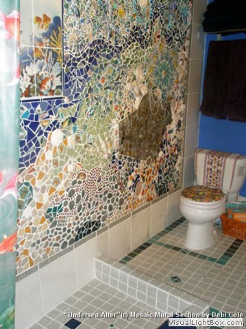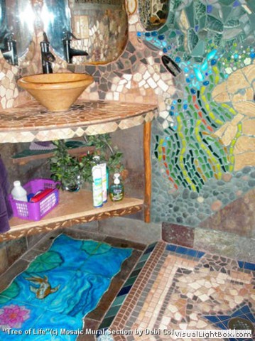 "I have photographed, appreciated & studied large mosaic murals all my life. Inspiration went to other projects until I built this home. I call these murals my new home's "cherry on the sundae art" because they were a special bonus to an already extraordinary home."